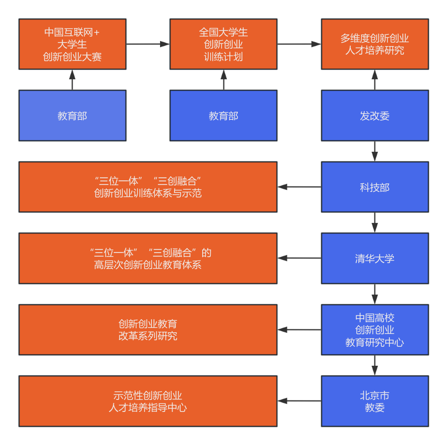 为深入贯彻全国教育大会精神,贯彻落实《国务院关于推动创新创业高质量发展打造“双创”升级版的意见》、《国务院办公厅关于深化高等学校创新创业教育改革的实施意见》《国务院办公厅关于深化产教融合的若干意见》要求,把创新创业教育贯穿人才培养的全过程,中国高校创新创业教育研究中心依托联盟在创新创业教育中的资源优势与平台优势,以教育部高等学校创新创业教育指导委员会课程工作组为指导,根据各地区、各高校创新创业教育需求,搭建以创新创业教育课程体系为主,师资建设、产教协同育人、特色的实践活动为辅的创新创业教育体系,助推各地区、各高校创新创业教育升级。