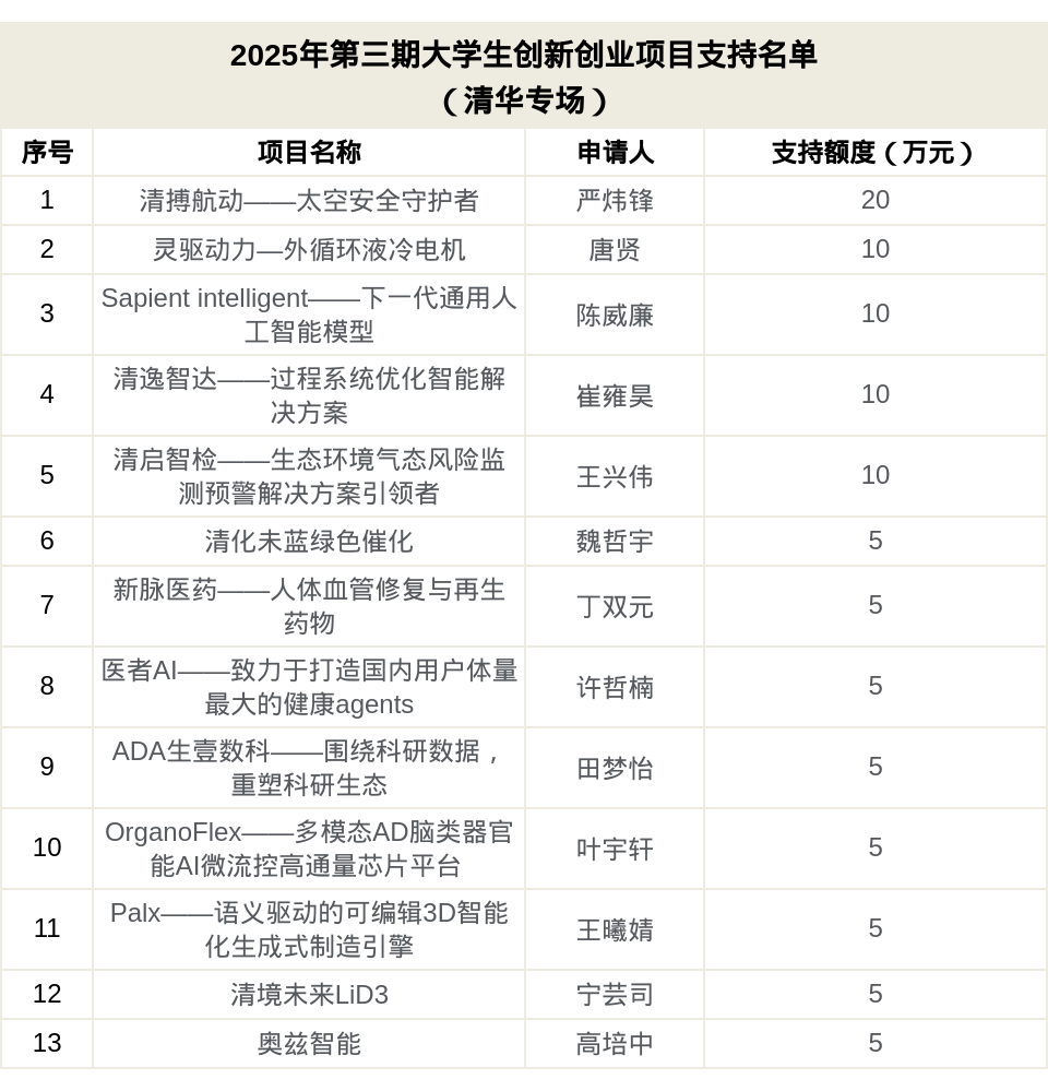 清华大学自2025年4月启动 “清衿启航” 学生创业训练计划以来,为首批在培22 支清华创业团队提供全方位政策指导与资源对接服务,并与株洲高新区开展深化合作支持项目快速孵化。株洲高新区专门设立每年 500 万元的大学生创业专项资金池,对符合条件的项目给予5-10-20万元无附加条件的梦想资金支持。截至目前,该专项资金池已开展三期评审活动,累计受理清华大学、中国科学技术大学等高校的 200 余个优质大学生创业项目,辐射效应显著;前两期已成功支持 39 个大学生创业项目,发放资金 310 万元。此次清华专场经过严格评审,共有 13 个项目获得 100 万元资金支持,评审结果近期已正式公布。