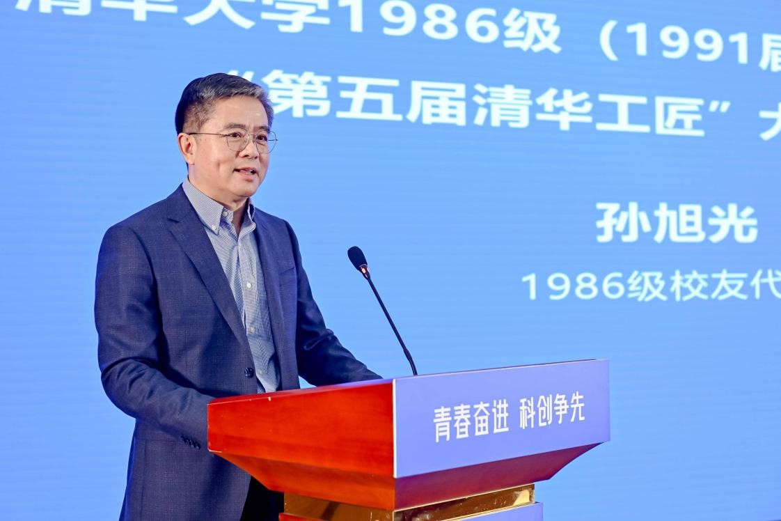 1986级校友代表孙旭光结合自身创业经历进行分享,并宣布1986级(1991届)校友奖励基金第五届“清华工匠大赛”正式启动。