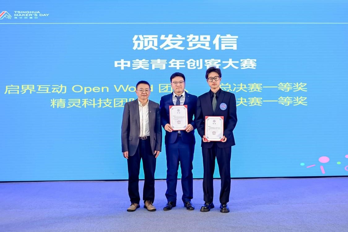 活动特别设置了贺信颁发环节,表彰清华学子在2025年度国内外重要创新创业赛事中取得的优异成绩。教务处处长刘毅宣读贺信,彭刚副校长为中国国际大学生创新大赛及中美青年创客大赛的获奖团队代表颁发了贺信。
