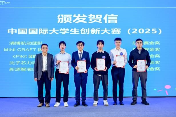 活动特别设置了贺信颁发环节,表彰清华学子在2025年度国内外重要创新创业赛事中取得的优异成绩。教务处处长刘毅宣读贺信,彭刚副校长为中国国际大学生创新大赛及中美青年创客大赛的获奖团队代表颁发了贺信。